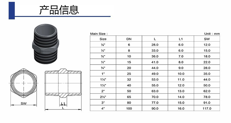 | 不鏽鋼六角外(wài)絲接頭 | |